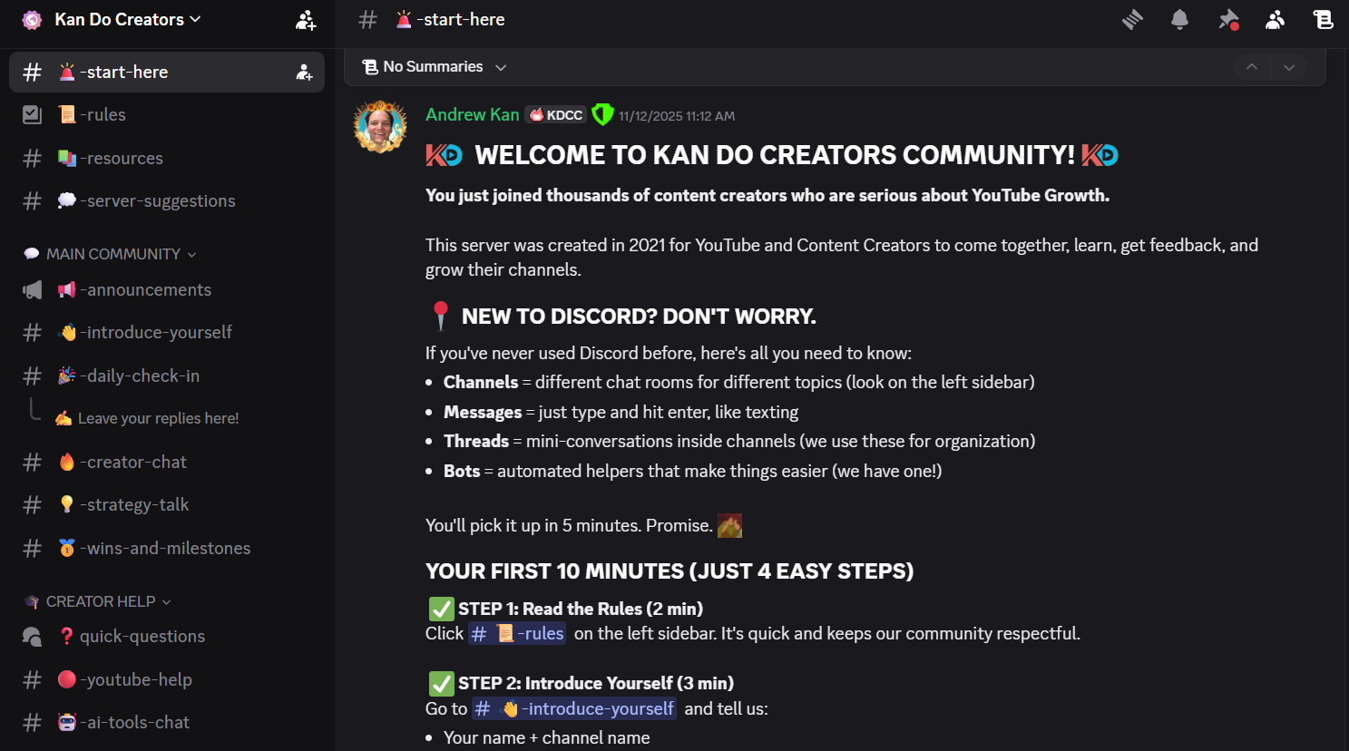 It's the reason why when people join our Discord server, we have a #🚨-start-here channel that goes over the first 10 minutes in 4 easy steps. We make sure to greet them when they make an introduction post.
