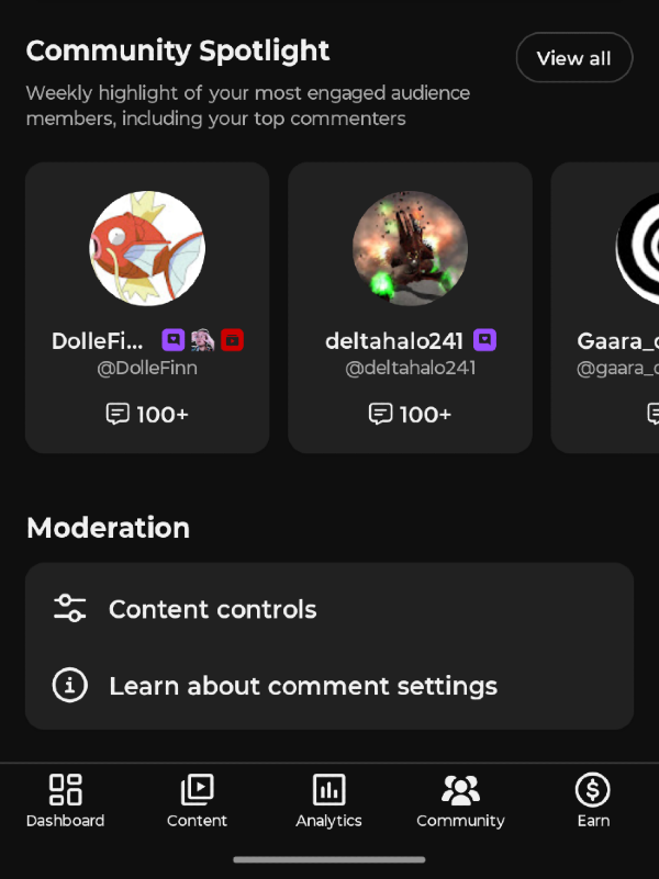 If you're looking for an easier way to see these viewers, head into your YouTube Studio mobile app. Go into the Community tab and you'll find the Community Spotlight tab towards the bottom.