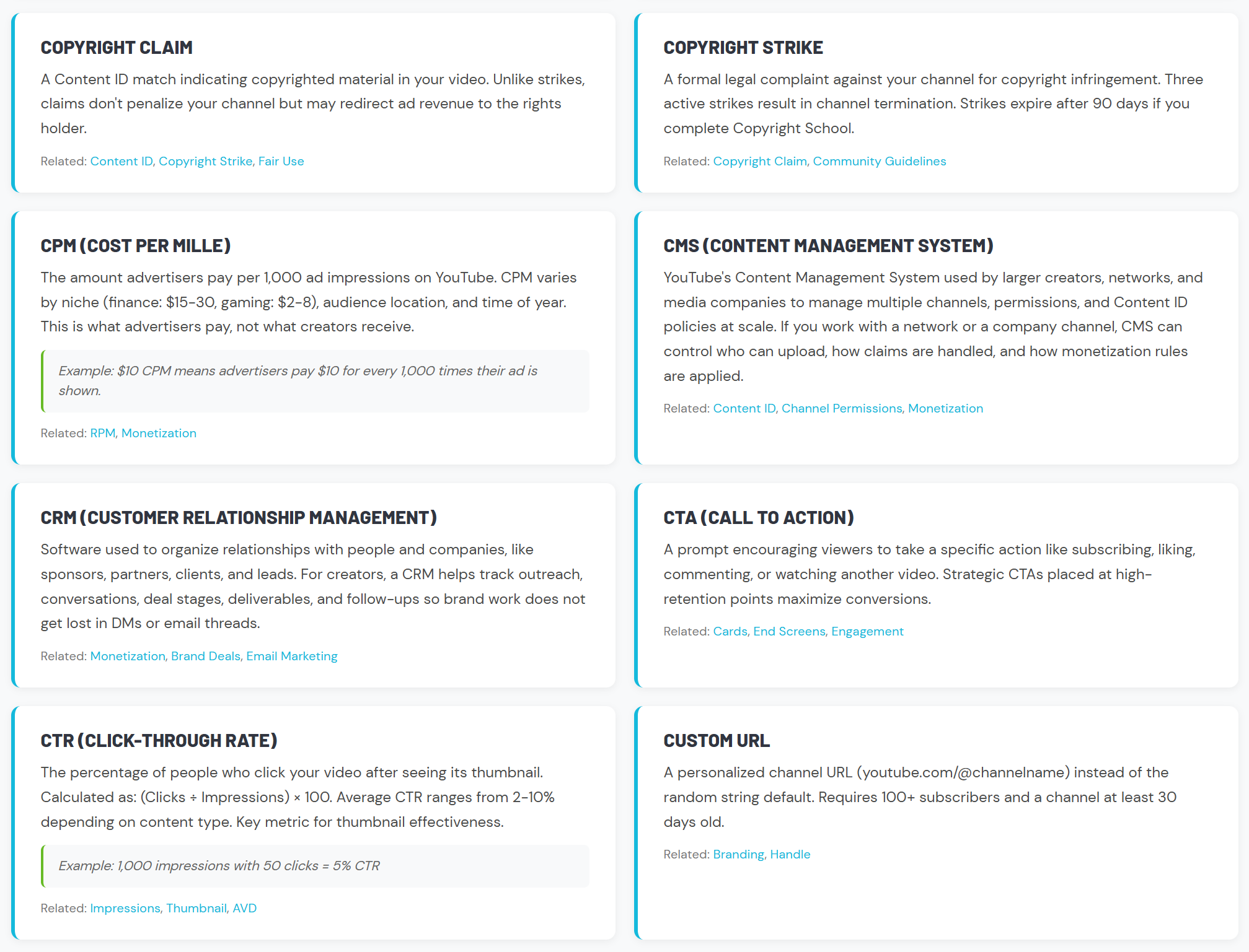 We also maintain the KDCC YouTube Glossary and Creator Dictionary, a free resource with over 175 terms across 8 categories. No email required, no paywall. It's one of the most comprehensive YouTube glossaries available, and it's there for any creator who needs it.