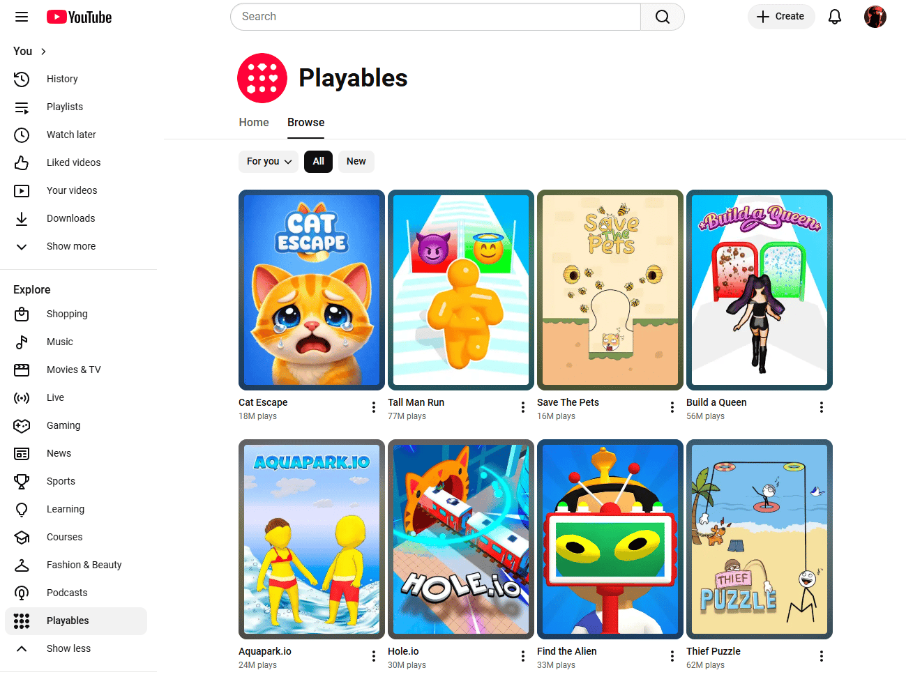 For those who aren't sure what Playables are, these are games that you can play directly on YouTube (desktop or mobile). The selections aren't... mind-blowing, but YouTube has been adding more and more games.