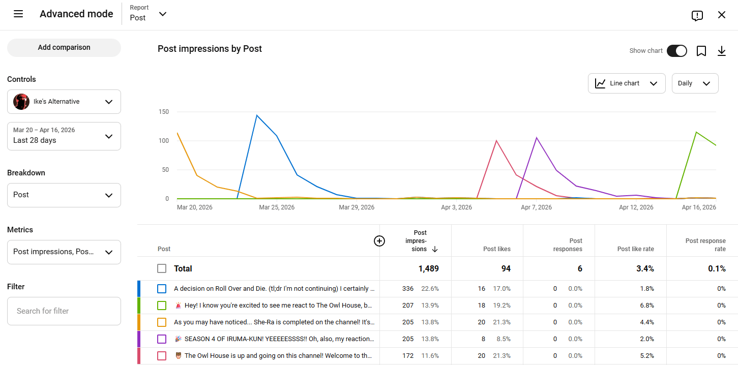 Currently, YouTube doesn't show sources for Posts... so we're hoping that's something they have in plan.