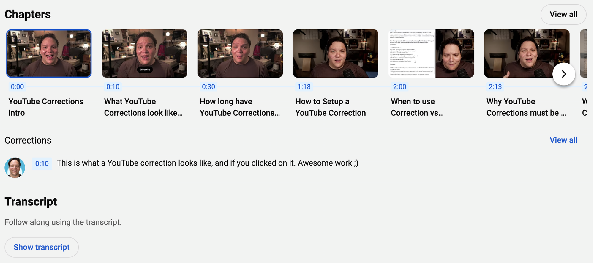 The deeper reason is architectural. YouTube placed the corrections setup inside the video YouTube description, under any chapters you have configured, rather than in the cards section of YouTube Studio where creators I feel would more naturally look for anything that renders as a card. That mismatch between where the feature lives and where creators expect to find it has kept the feature effectively invisible for the entire time it has been available.